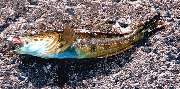 | 似た魚と見分け方 | カジカ科は見分けるのが難しいです。キリンアナハゼは、体側下半部に白点が散在する。アナハゼはそれがないか、あっても小さい。(釣魚) |