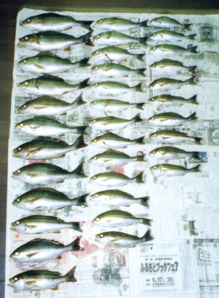| コメント | 船長の指示棚より3mくらい下まで仕掛けを降ろしてからコマセを撒きながら誘って行きます。そうするとコマセの中に漂うオキアミをイサキが飛びついて来ると言う訳です。この釣りではメジナ、アジ、ウマズラハゲ、ソイ、ショウサイフグなどの多彩な外道が楽しめる面白さがあります。 http://www1.sphere.ne.jp/okituri/sub420000717.htm タックル:ダイワ インターライン潮流80−350 |